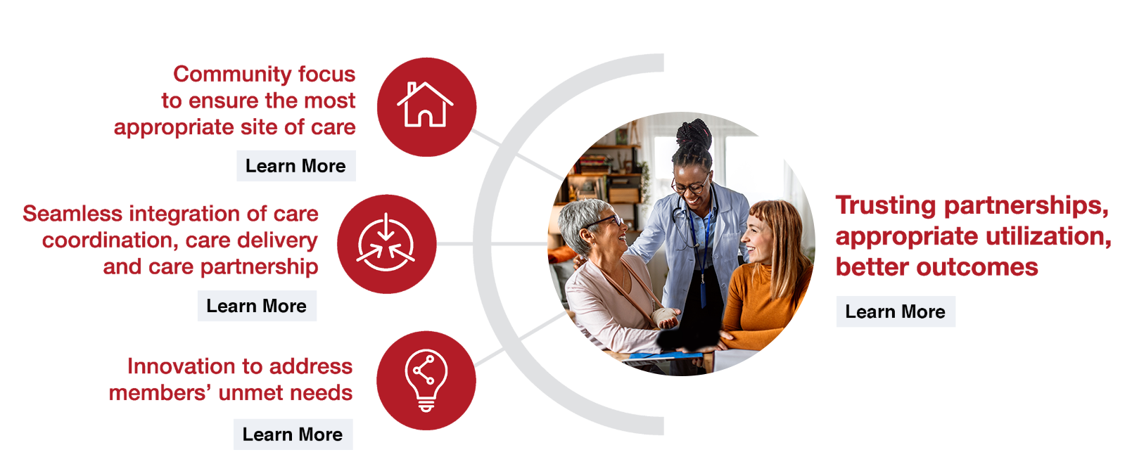 At the core of our mission is our comprehensive model of uncommon care. This unique model delivers better health outcomes through seamless integration, a community focus, and an emphasis on the behavioral health needs and social factors that account for so many critical gaps. It is based on our deep, data-powered understanding of what puts people at risk, together with our unique ability to find and engage hard-to-reach individuals.